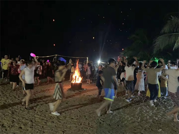 夜幕降臨,大家都光著腳丫,踩在軟綿綿的沙灘上,圍著一團團的篝火,唱著歌,跳著舞......